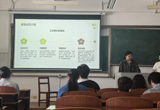 王一冰同學作為寢室代表對寢室的成員進行了詳細介紹,他給我們展示了四個各自生懷「絕技」的室友,幽默詼諧的ppt帶動了現場氛圍。