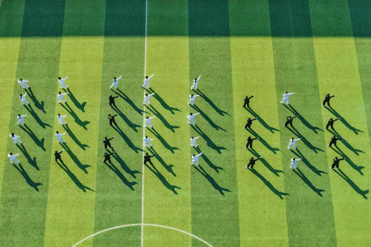 伴隨古韻悠揚的琴音,各參賽隊伍神采飛揚,意氣風發。起勢如松立峭壁,推手似水繞青山;動靜之間,盡顯剛柔之美;開合之中,暗含天地之道。隊員們以整齊的隊形、響亮的口號、創意的橫幅,將青春的朝氣與傳統的意蘊完美相融,展現了太極拳在現代校園中的蓬勃生機。一招一式中,不僅是對身體與意志的錘鍊,更是對中華優秀傳統文化的深切認同與自覺傳承。他們以拳寄意,以武傳情,將「愛校榮校」的熱忱,融入每一式流暢的動作之中,讓太極拳這一非物質文化遺產,在紡大校園綻放時代光華。