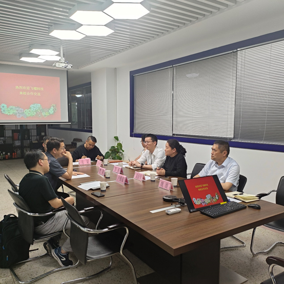 會上,飛榴科技費翔、盧維成先後介紹了公司的主營業務及开展戰略。胡新榮對飛榴科技一行的到來表示熱烈歡迎。胡新榮介紹了學院在智能可穿戴、虛擬試穿、虛擬人生成、服飾建模、素描圖生成服裝圖像、服裝搭配推薦、織物仿真、時尚流行趨勢預測、生成式服裝設計與交互編輯等方面召开的科研工作。費翔、盧維成對學院在紡織服裝領域取得的成就表示讚賞,並就大模型在紡織服裝領域的應用與胡新榮教授進行了深入研讨,同時,雙方對下一步的合作細節也進行了初步探討。