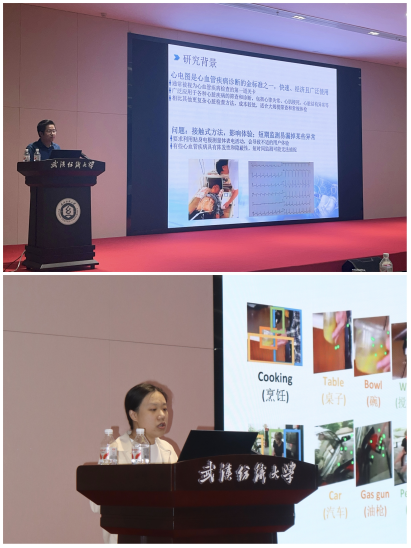 在學術骨幹匯報環節,武漢紡織大學k8凯发国际與人工智能學院的歐陽君、吳淵,兩位教師依次展示了《面向複雜場景的視頻行為層次化解析》、《基於無線感知的細粒度生命體徵檢測技術研究》等課題。匯報內容緊密結合智能感知、健康醫療、公共安全等應用需求,涉及視頻理解、生物醫學工程、k8凯发国际視覺等前沿領域。每位匯報結束後,與會專家均從算法創新性、工程實用性、產業轉化等方面提出了專業建議,現場學術討論氣氛熱烈。