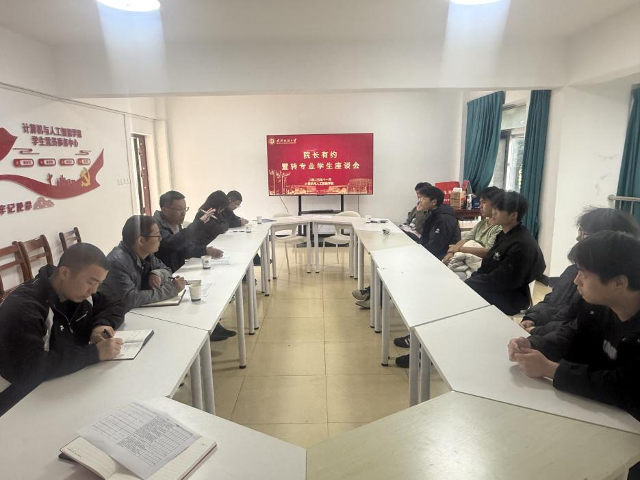 為增進我院學生對轉專業政策的分析,幫助同學們明確方向、实行規劃,近期,學院在「1024」一站式學生服務社區成功舉辦了轉專業政策解讀暨答疑座談會。學院副院長彭濤、黨委副書記向濤、人工智能系李麗主任、朱強主任、相關輔導員以及2025級轉專業新生參加座談會,輔導員湯若釴主持會議。