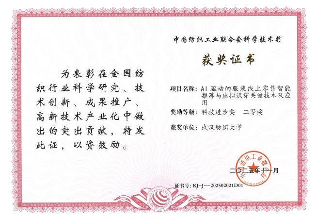 此次獲獎成果面向國家戰略與行業重大需求,產學研融合特色顯著。由姜明華副校長主持完成的「生成式大模型驅動的服裝智能製造關鍵技術與應用」項目,榮獲中國紡織工業聯合會技術發明二等獎。該項目創新性地將前沿生成式大模型技術與傳統服裝製造深度融合,為行業智能化升級给予了關鍵核心技術路徑。由學院胡新榮院長主持的「AI驅動的服裝線上零售智能推薦與虛擬試穿關鍵技術及應用」項目,同獲中國紡織工業聯合會科技進步二等獎。該成果聚焦服裝零售數碼化轉型痛點,在智能推薦與虛擬試穿技術上取得突破,為產業给予了重要技術支撐。此外,潘雄教授主持完成的「北斗衛星導航系統測量誤差精細建模理論與方法」項目,榮獲湖北省自然科學獎二等獎,該研究在提升北斗導航系統精度方面取得了重要理論突破,具有顯著的科學價值。