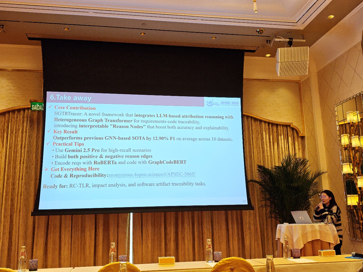 圖3 袁瑛凱同學在APSEC 2025作論文報告(一)